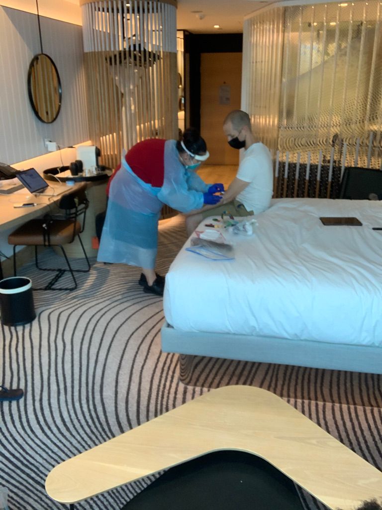 - 8th January 2021: Nurse visited our hotel room to take a blood test in order to determine anti-body count and COVID-19 strain